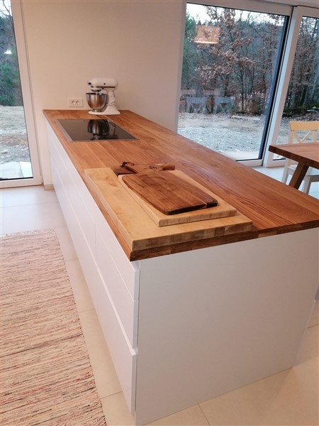 Kuhinja po mjeri – masivne hrastove radne ploče i bijele fronte