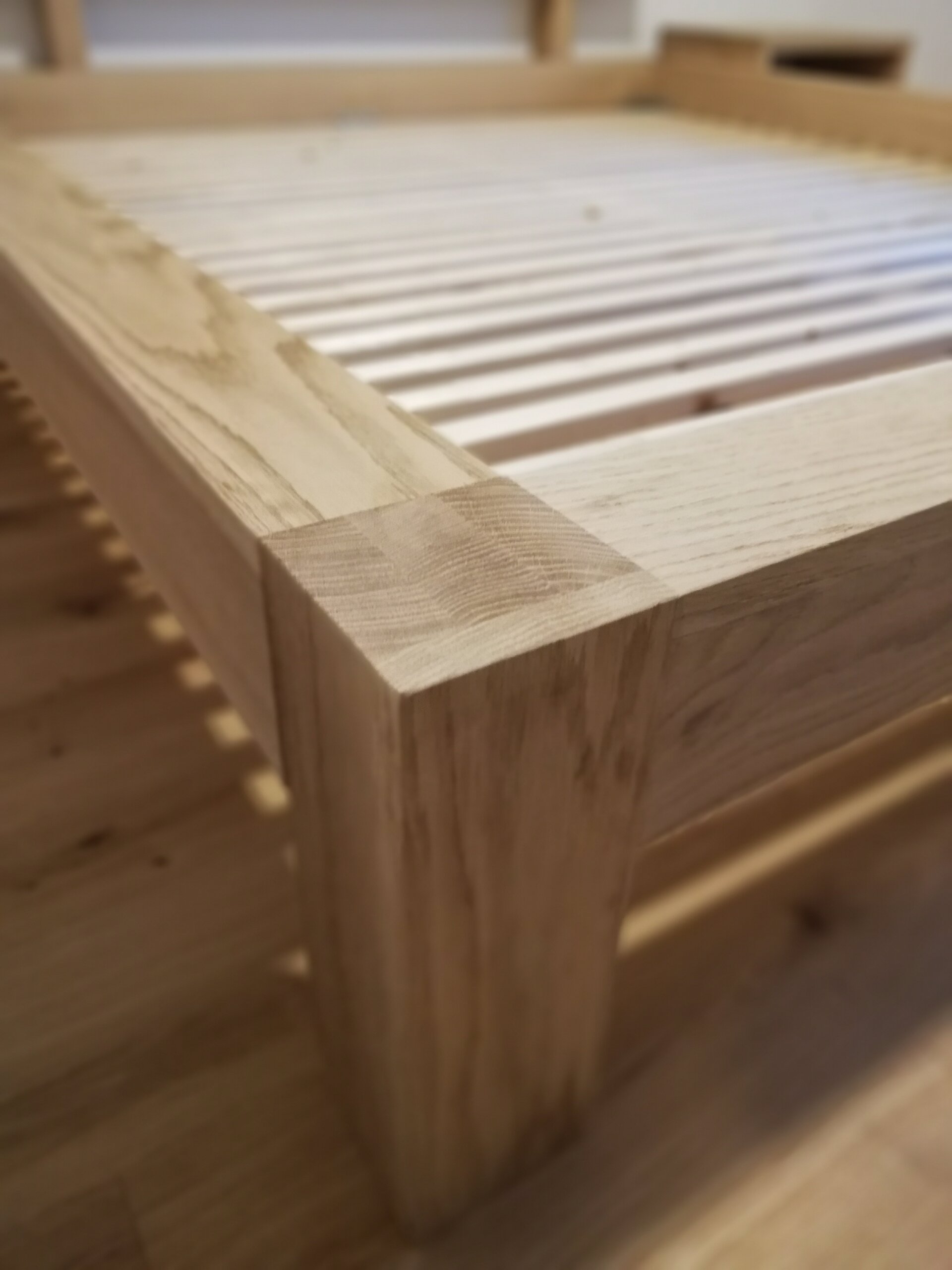 Ovaj prestižni hrastov krevet izrađen je od masivnih greda dimenzija 16 × 12 cm, što mu daje iznimnu robusnost, stabilnost i dug vijek trajanja. Unatoč naglašenoj masivnosti, krevet zadržava elegantnu i modernu liniju koja se savršeno uklapa u suvremene i rustikalne spavaće sobe.