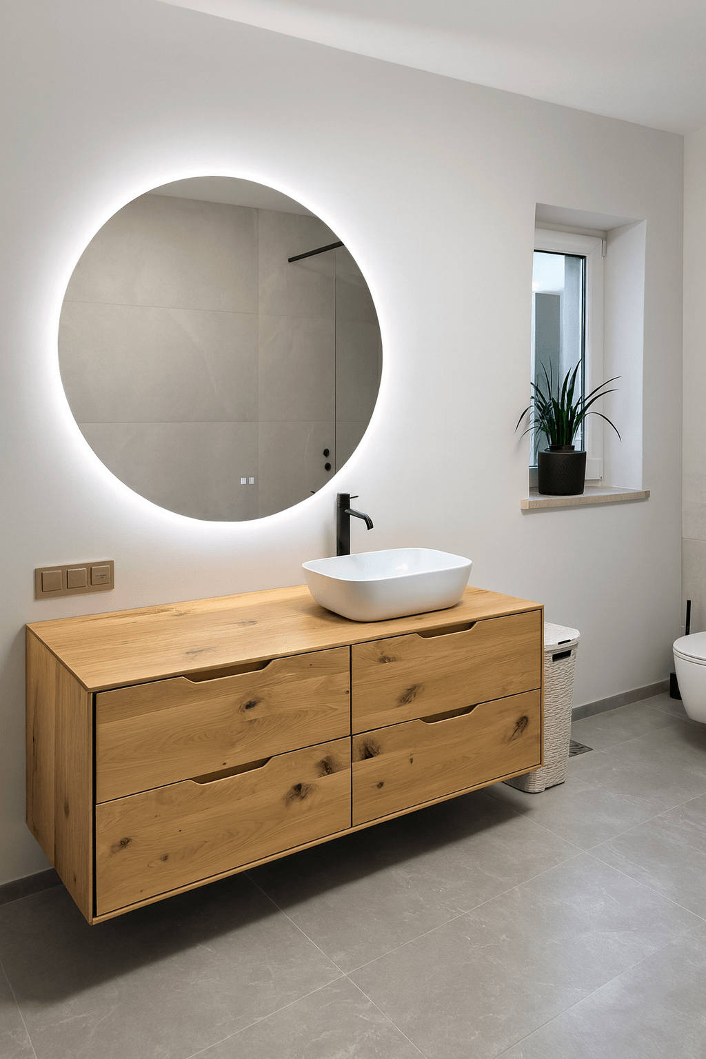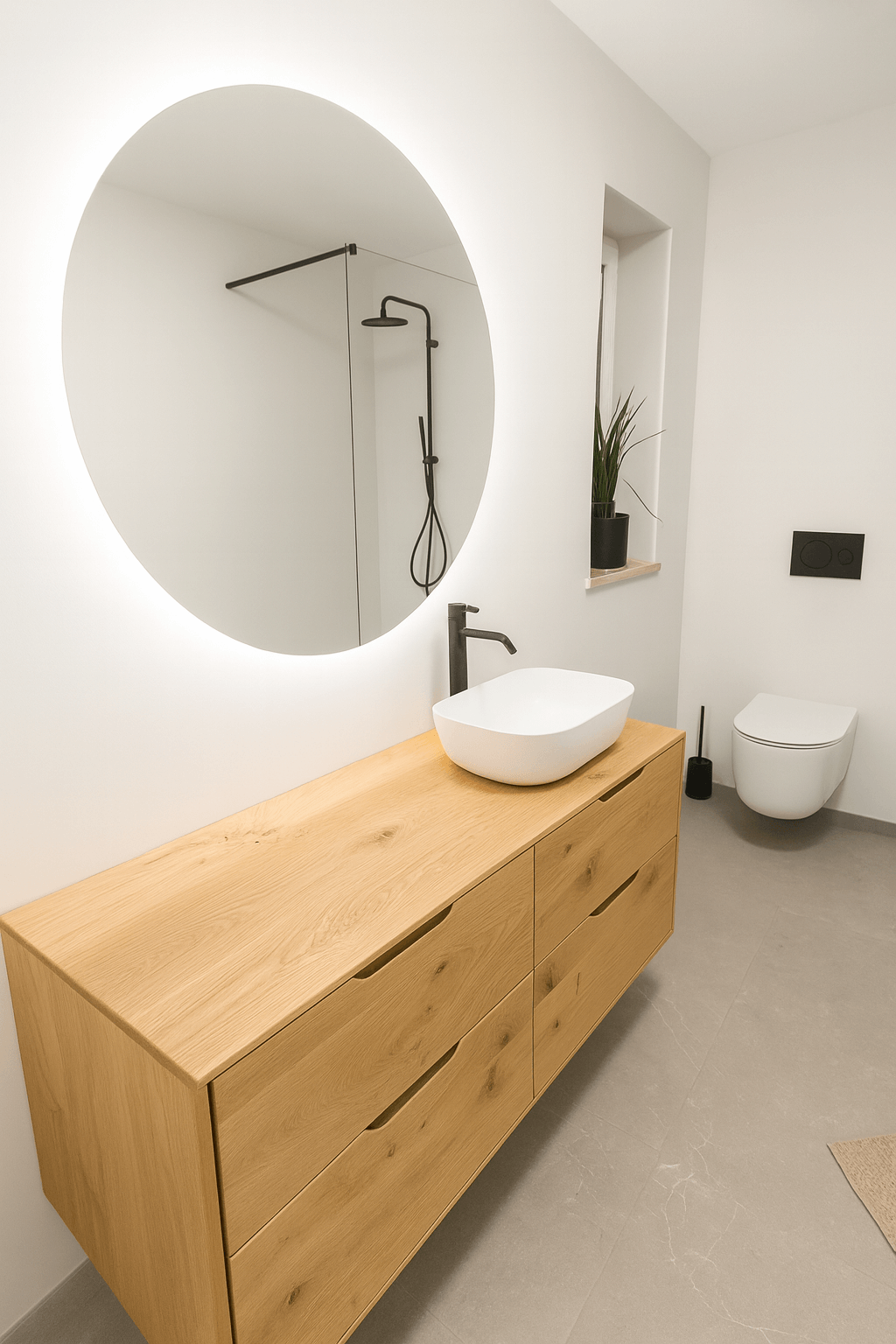 U vaš dom dolazi kupaonski element koji spaja bezvremensku ljepotu masivnog hrasta i vrhunsku stolarsku izradu. Svaki je centimetar ručno obrađen i zaštićen prirodnim uljnim premazom koji naglašava toplinu drveta i njegov jedinstveni karakter.